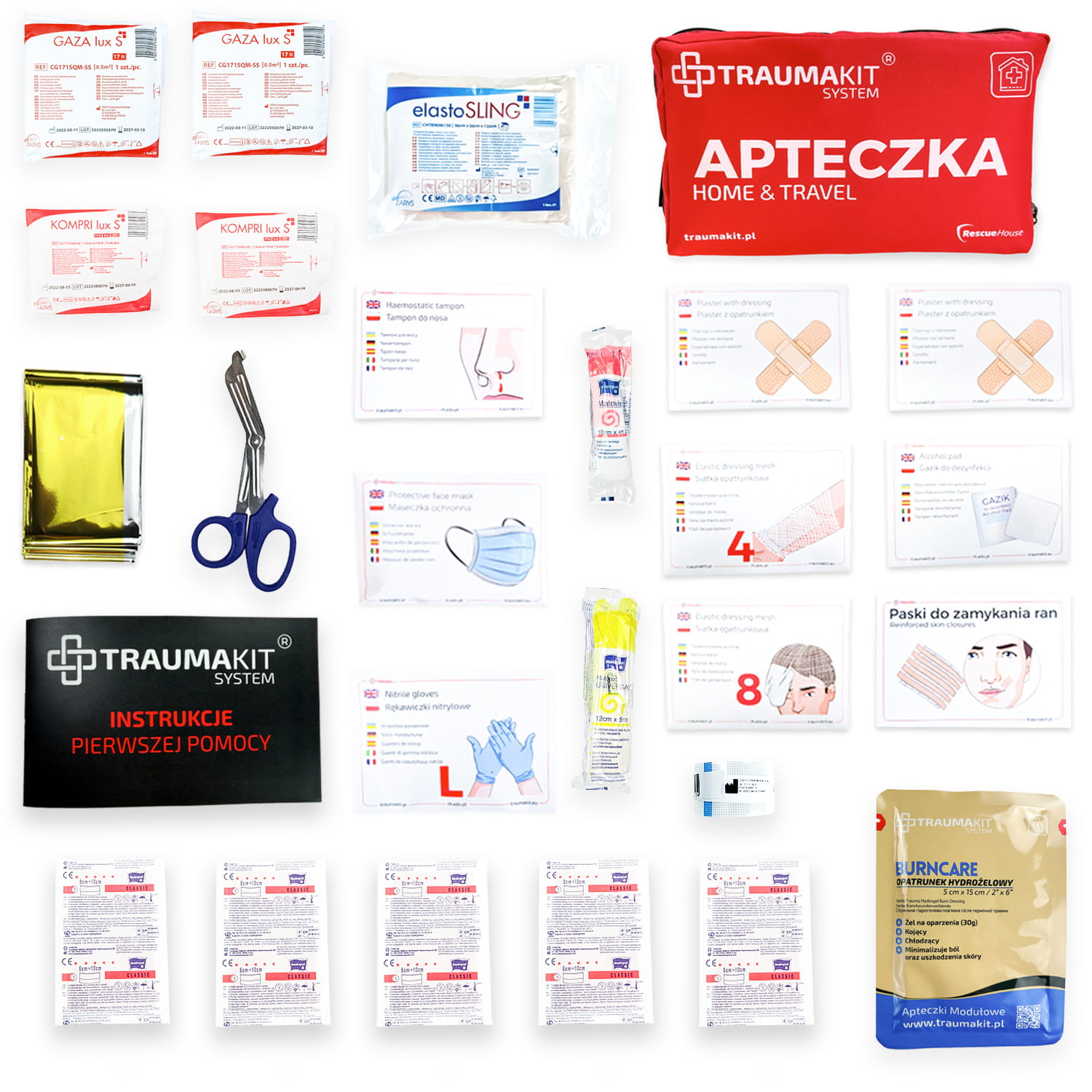 Apteczka Home & Travel TRAUMA KIT - doskonale sprawdzi się, jako apteczka domowa lub samochodowa. Zawierająca ponad 30 elementów, apteczka umożliwia szybkie i skuteczne opatrywanie małych zranień, krwawień i oparzeń. Każdy element został starannie dobrany, by służyć w praktyce.
