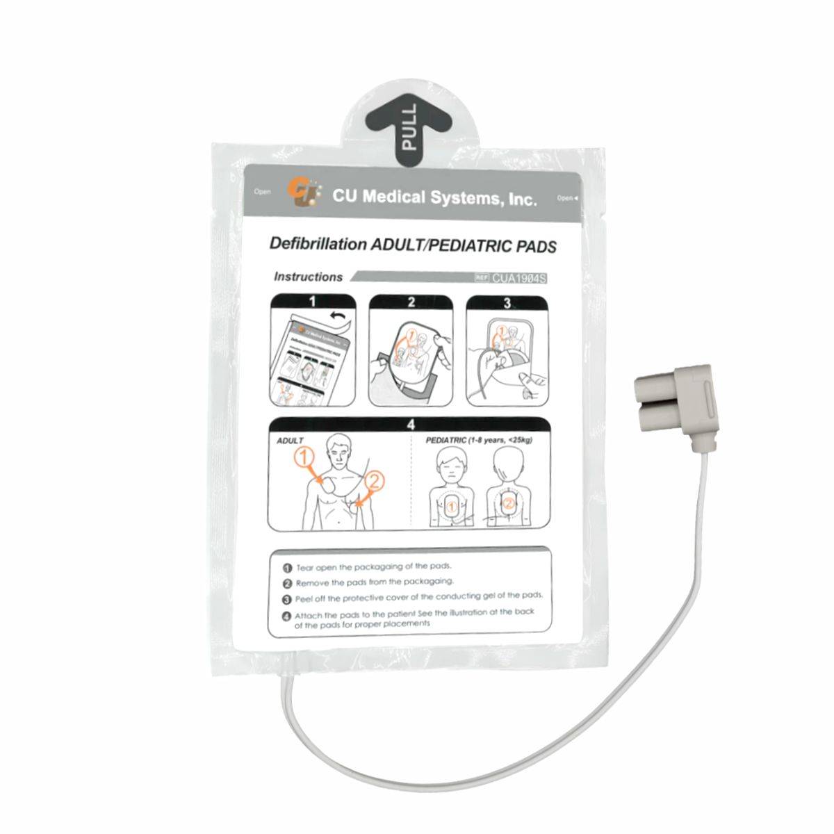 – elektrody dostarczane są z kablem przyłączeniowym – wystający poza opakowanie fragment kabla z wtyczką, może być podłączony do AED od razu po zakupie urządzenia, dzięki czemu czas działania w razie zagrożenie życia jest krótszy,